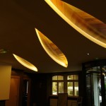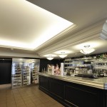 Travaux de plafond staff avec gorges à éclairage indirect dans le zone accueil et bar de l’hôtel